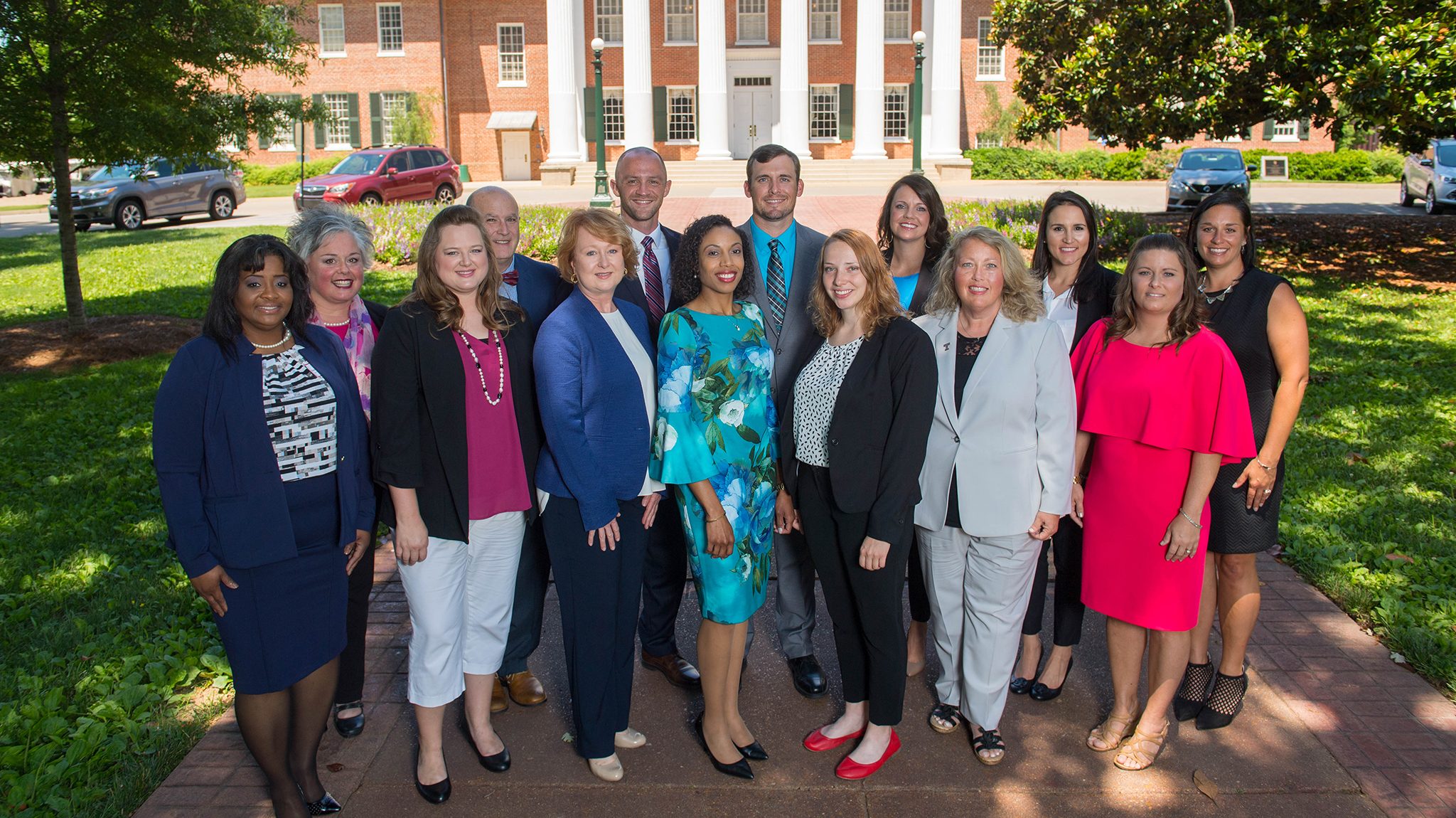 Fourteen educators from across the state make up the 10th cohort of the Principal Corps. They are (from left) Chanda Jenkins, Suzanne Cain, Kristin Walters, Jamey Germany, Luke Daniels, Liza Hadden, Luke Daniels, Precious Malembeka, Matthew Magee, Megan Duff, Kama Smith, Dana Maharrey, Jamie Tiblier, Miranda Bishop and Katie Gilbert. Photo by Kevin Bain/Ole Miss Digital Imaging Services