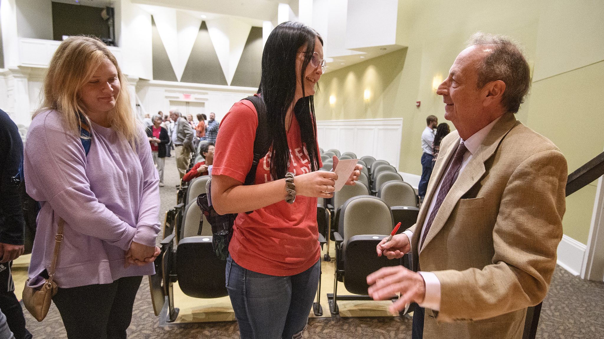 Ole Miss students chat with Alexander Bernstein following his lecture in Nutt Auditorium. Photo by Thomas Graning/Ole Miss Digital Imaging Services