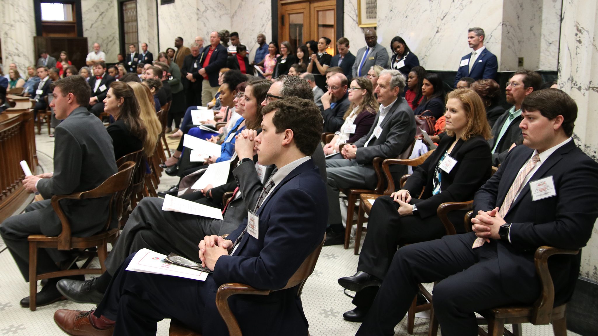 Jared Akers (right), a dental student at the UM Medical Center, and Jennifer Bain (second from right), associate professor and chair of periodontics at the Medical Center, attend a recognition ceremony for all the 2020 HEADWAE Awards recipients at the state Capitol in Jackson. Photo by Tammi Bowles/Hinds Community College