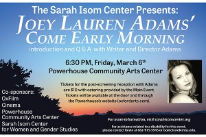 The University of Mississippi’s Sarah Isom Center for Women and Gender Studies is teaming with the Department of Theatre Arts and Oxford’s Powerhouse Community Arts Center for a screening Friday (March 6) of “Come Early Morning,” a film from former Oxonian Joey Lauren Adams. Adams, an actor, writer and director known for her roles inRead the story …