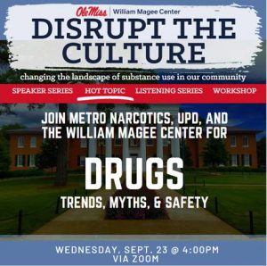 OXFORD, Miss. – The trends, myths and safety issues of substance abuse are the focus for a virtual discussion hosted Wednesday (Sept. 23) by University of Mississippi educators. The “Disrupt the Culture Hot Topic” conversation, which begins at 4 p.m., is sponsored by the William Magee Center for Wellness Education, University Police Department and MetroRead the story …