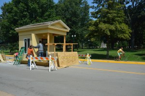Temporary welcome booth opened on campus this morning, work on permanent booth underway