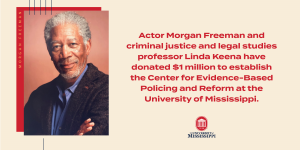 OXFORD, Miss. – Actor Morgan Freeman and criminal justice and legal studies professor Linda Keena have donated $1 million to establish the Center for Evidence-Based Policing and Reform at the University of Mississippi, pending approval by the state’s Institutions of Higher Learning. After months of planning with the UM Department of Criminal Justice and LegalRead the story …