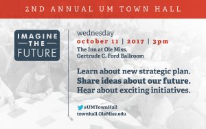 OXFORD, Miss. – The second annual University of Mississippi Town Hall is set for 3 p.m. Wednesday (Oct. 11) in the Gertrude C. Ford Ballroom of The Inn at Ole Miss. All students, staff and faculty are encouraged to come hear about exciting initiatives in Chancellor Jeffrey Vitter’s “State of the U,” be among theRead the story …