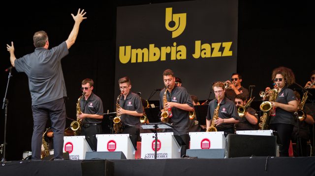 The Mississippians jazz ensemble performs in 2018 at the Umbria Jazz Festival in Perugia, Italy. Celebrating its centennial at the university, the student ensemble returns to Europe in July to play at three renowned music festivals. Photo by Mattia Alunni Cardinali