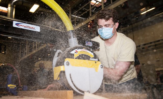 An Ole Miss student in the Haley Barbour Center for Manufacturing Excellence participates in a class project designed to teach students to create efficient and balanced assembly lines on the CME factory floor. A gift from the family of Charles Holder Jr. establishes a scholarship at the center with the goal of providing more qualified professionals for the state’s manufacturing industry. Photo by Logan Kirkland/Ole Miss Digital Imaging Services