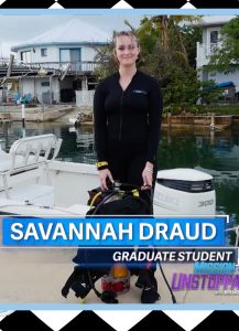 Graduate student Savannah Draud, who works with professor Tamar Goulet on research into corals, appears on this weekend’s edition of ‘Mission Unstoppable.’ Goulet said she hopes the segment inspires more young women to pursue STEM careers. Image courtesy ‘Mission Unstoppable’