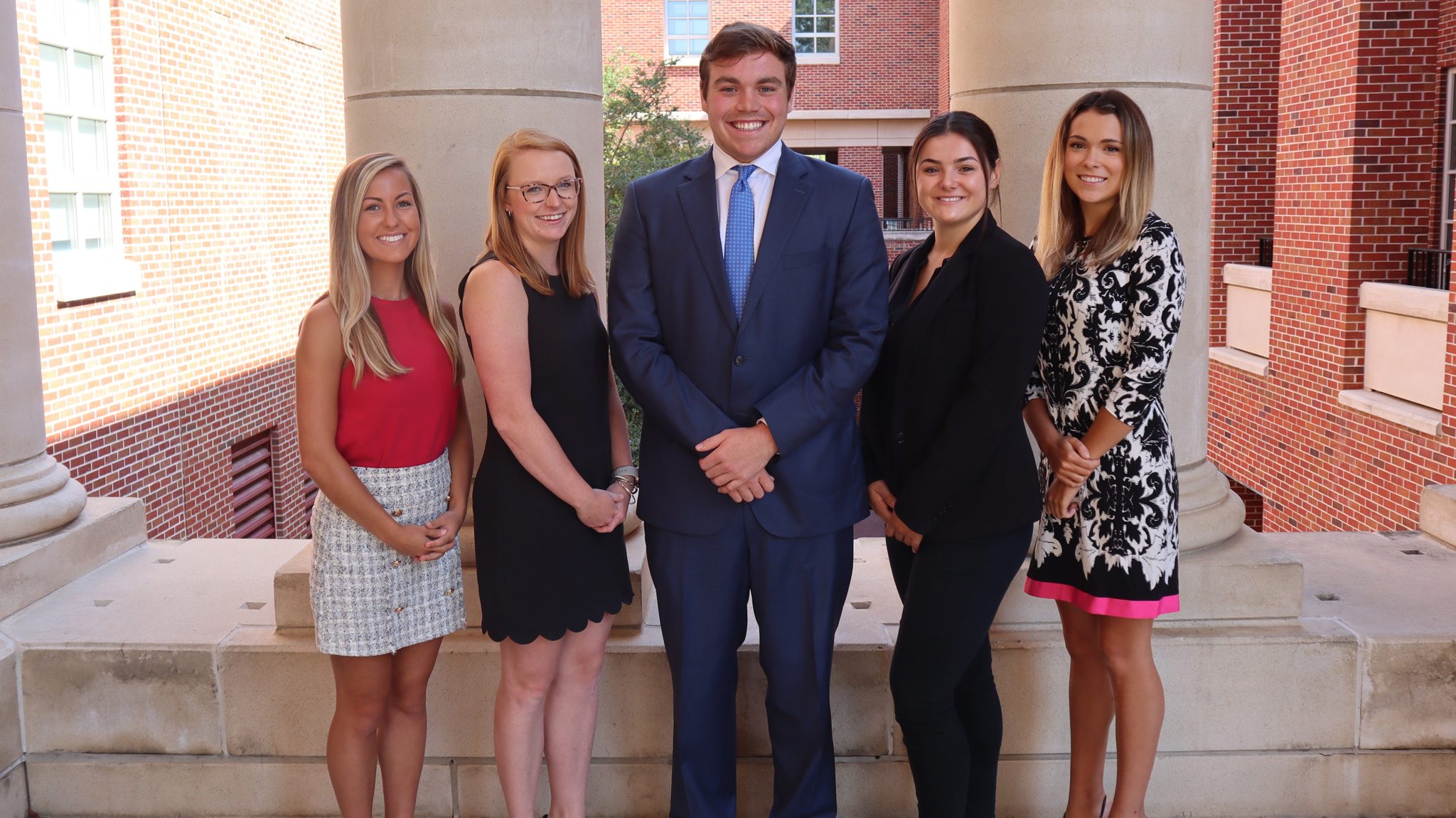 Officers for the 2019-20 Ole Miss MBA class include (from left) Aimee Dillenberger, vice president for recruitment; Emily Harral, president; Heath Rooks, vice president for communications and public relations; Tasia Tsiplakos, vice president for finance; and Rachael Dickens, vice president for social events. Photo by Maria White/School of Business Administration