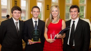 This year's Gillespie Business Plan Competition included competitors (from left) Jonathan Broom; Ryan Rigney, who won the overall Best Business Plan prize; Whitley Miley, who took second place for Best Business Plan and won the Best Women's Team and Best Social Entrepreneurship Idea prizes; and Lee Dubose. UM photo by Joe Worthem