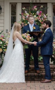 Mack Hubbell (center) officiates the wedding of his sister, Field (left), and her husband, Harry Keck, in Oxford in April 2023. Submitted photo