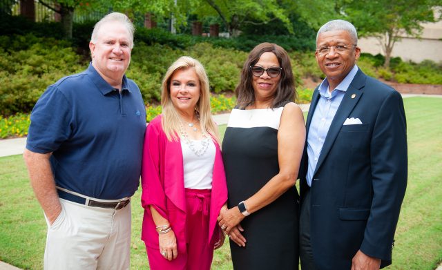Co-chairs (from left) Sean and Leigh Anne Tuohy and Debra and retired Maj. Gen. Leon Collins are leading the steering committee for Now & Ever: The Campaign for Ole Miss, which has attracted $1.2 billion toward its $1.5 billion goal. Now & Ever is the largest fundraising campaign in the history of Mississippi universities. Fiscal year 2022 fundraising saw $150.6 million secured in private support. Photo by Bill Dabney/UM Foundation