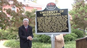 A historic day in the Civil Rights Movement is recalled in the latest Mississippi Freedom Trail Marker unveiled today at The University of Mississippi campus, which commemorates James Meredith’s enrollment at Ole Miss in 1962. Video by Mary Stanton.