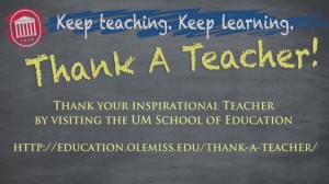 Find out how you can say thank you to an inspirational teacher and help out the future teachers of tomorrow. Video by Mary Stanton. To Thank a Teacher visit education.olemiss.edu/thank-a-teacher/.