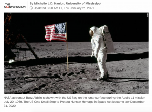 Astronaut artifacts on moon – like Apollo landers and Neil Armstrong’s bootprint – now protected by US law CNN/The Conversation It’s hard to care about bootprints sunk in soil 238,900 miles away as humanity suffers the combined burden of an unforgiving virus and a political unease. But how humans treat those bootprints and the historicRead the story …