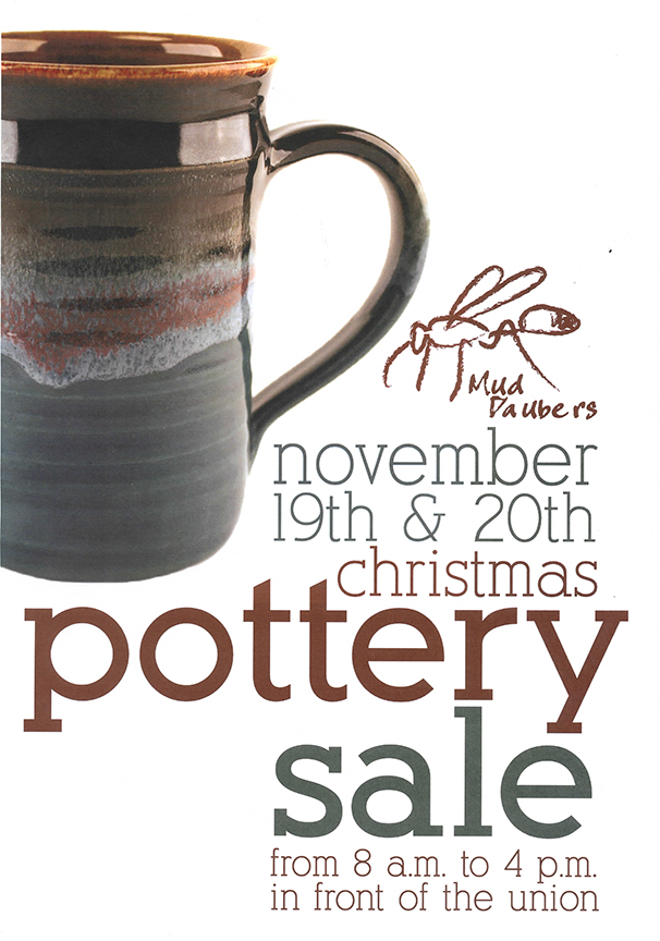 The Mud Daubers, a group of advanced student ceramicists, will host their annual Christmas pottery sale from 8 a.m. to 4 p.m. today and tomorrow (Nov. 19-20) in front of the Student Union.