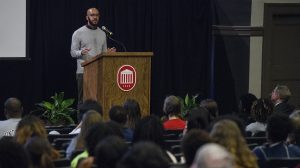 National Poetry Slam champion Clint Smith shares his original ‘spoken word’ meditations during the keynote address for Black History Month at the University of Mississippi. Photo by Thomas Graning/Ole Miss Communications