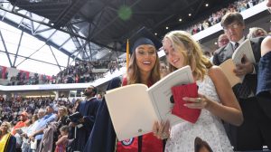 Graduates, family members and others sing the ‘Alma Mater’ during the University of Mississippi’s 166th Commencement ceremonies Saturday (May 11) in The Pavilion at Ole Miss. The university issued degrees to more than 5,500 graduates during the ceremony. Photo by Kevin Bain/Ole Miss Digital Imaging Services