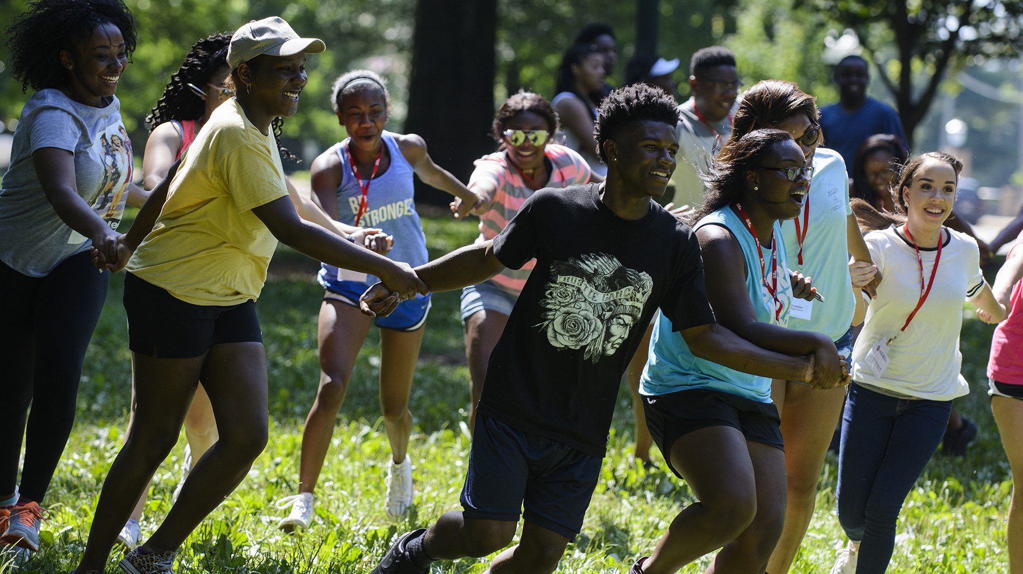 Team-building exercises in the Grove are among the tools utilized by the MOST conference to help potential students learn to succeed. Photo by Marlee Crawford/Ole Miss Digital Imaging Services