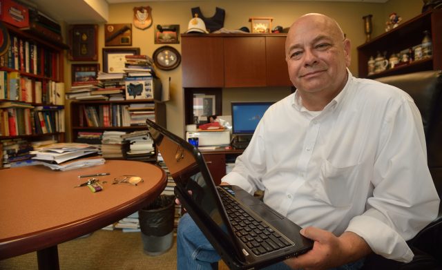 David McElreath, an Ole Miss professor of criminal justice and legal studies, has been involved in law enforcement for more than five decades, including stints as a police officer, park ranger, military officer and educator. Mississippi Crime Stoppers presented him with its Pam Vance Lifetime Service Award in October in Biloxi. Photo by Kevin Bain/Ole Miss Digital Imaging Services