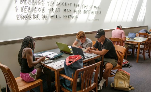 A group of students studies together in the J.D. Williams Library. Alumna Dorothy Wayne Blackwell, who valued teaching and learning, has left an estate gift of $153,000 to fund scholarships and program enhancements for the UM School of Education. Photo by Robert Jordan/Ole Miss Digital Imaging Services