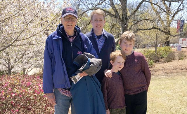 UM alumnus William M. Richardson III (center), of San Francisco, has created a scholarship endowment for first-generation students at the university. He recently visited campus with his father, William ‘Bill’ Richardson Jr. (left), a 1968 graduate of the Ole Miss School of Law, and his sons, Benjamin ‘Benny’ Richardson and William ‘Liam’ Richardson IV. Submitted photo