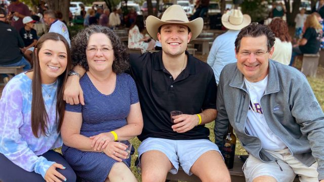 The family of the late Jacques Allain (second from right) have established a scholarship in his honor to benefit freshmen from Texas and Louisiana in the School of Business Administration. They are (from left) his sister, Camille; mom, Jeanne; and dad, Moe. Submitted photo