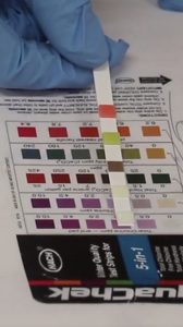 The fourth step of the research is the quantification of free chlorine, total chlorine, total hardness, total alkalinity and pH using the 5:1 test strips.
