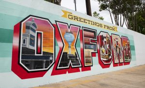 A mural near the Oxford Square shows the city’s personality. Photo by Logan Kirkland/Ole Miss Digital Imaging Services