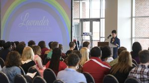 Brandi Hephner LaBanc, UM vice chancellor for student affairs, speaks to LGBTQ students at the Lavender Graduation earlier this month. Photo by Thomas Graning/Ole Miss Communications