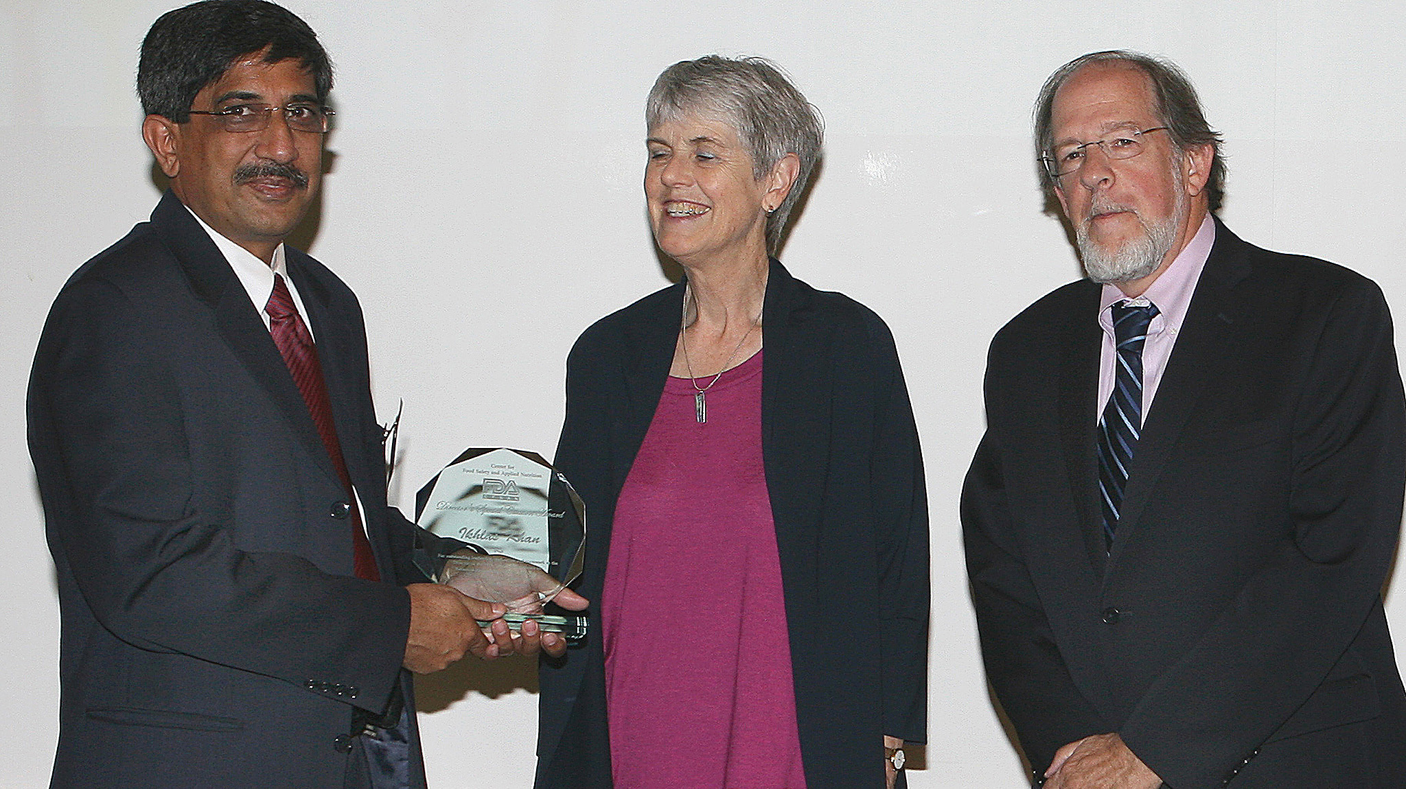 Khan received the award Friday (Sept. 7) at CFSAN’s headquarters in College Park, Md., where the center presented its 2012 Honor Awards.