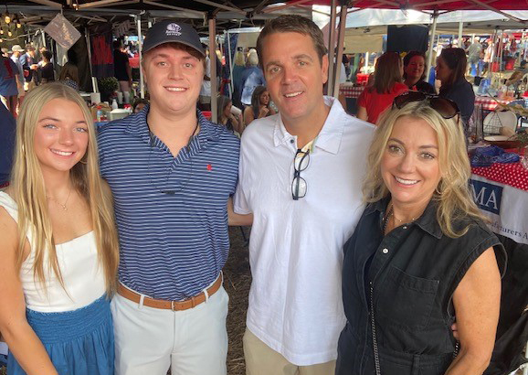 The late Walker Fielder (second from left) is being memorialized with a UM scholarship endowment in his name. Pictured with the Ole Miss student who died in October is (from left) his sister, Abby, dad, Allen, and mom, Allison, as the family gathered in the Grove. Submitted photo