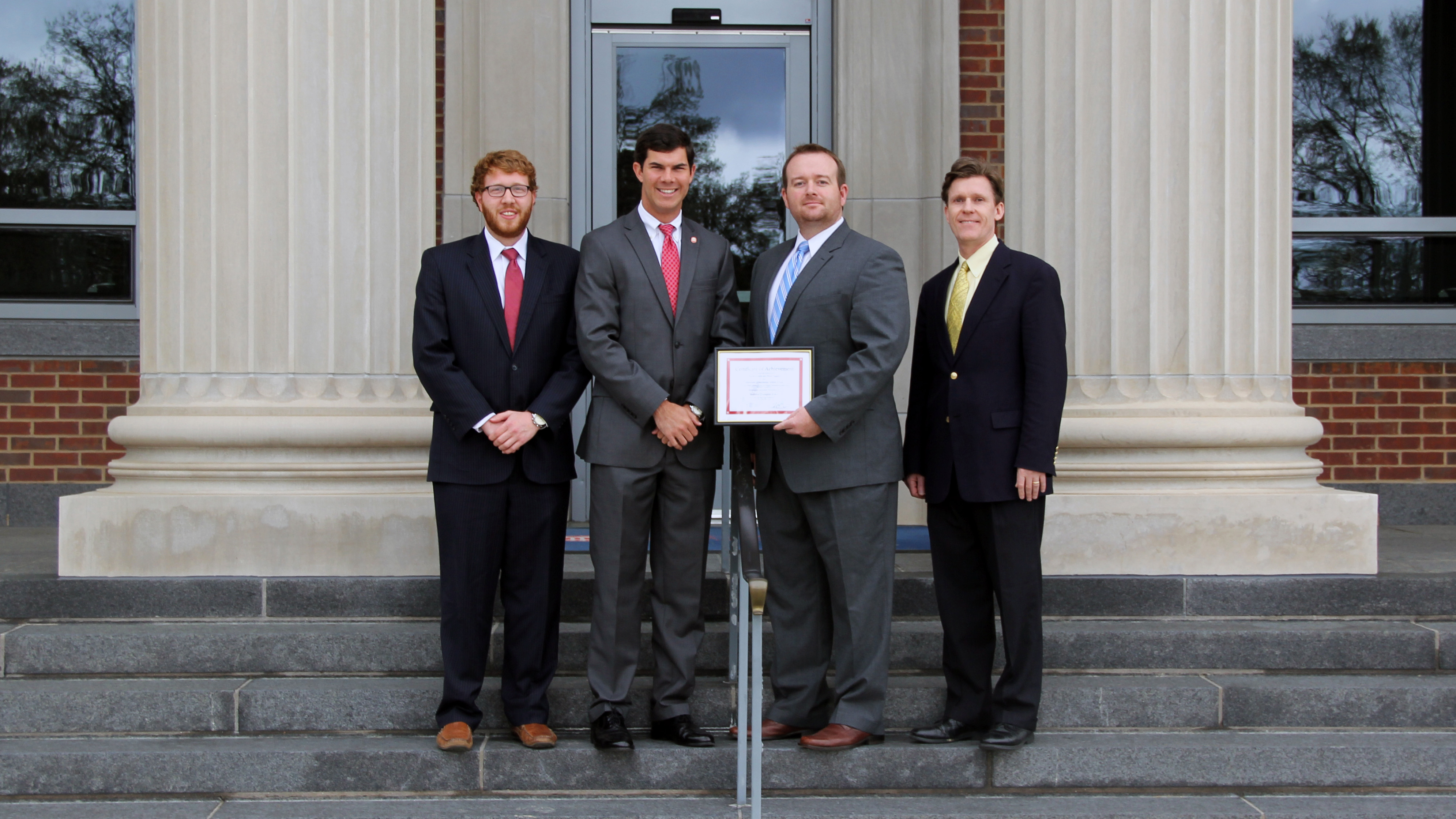 Patrick Everman, chair of the Negotiation Board and student coach; Drew Taggart; Brad Cook; and Professor Mercer Bullard, faculty coach