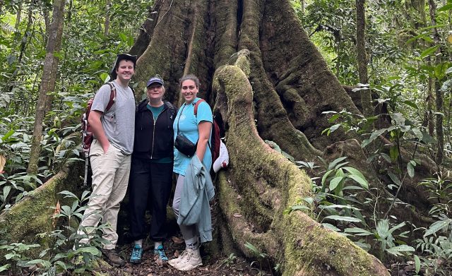 Kate Centellas (center), Croft associate professor of anthropology and international studies, spends time in the jungle with two Ole Miss students on a recent trip to Bolivia. Centellas will lead a group of 10 students to La Paz, Bolivia, next summer to study medical anthropology and health disparities as part of a Fulbright-Hays Group Projects Abroad Award. Submitted photo