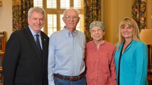 UM Chancellor Dan Jones (left) and Debbie Vaughn (right), senior executive director of development for UM, thank Winston “Cape” and Barbara Caperton of Warrenton, Va., for establishing the Barbara Caperton Scholarship Endowment.