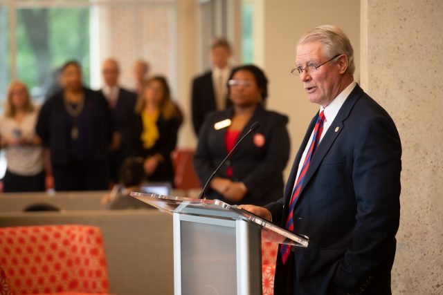 Chancellor Glenn Boyce speaks during the dedication of The Gertrude C. Ford Ole Miss Student Union. Photo by Kevin Bain/Ole Miss Digital Imaging Services