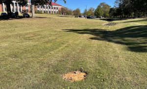 “Working together with Facilities Management, we got some dry wells drilled into the basin, which are holes filled with gravel that will allow more room for water to infiltrate instead of going away in a pipe,” Surbeck said. “And so that’s something that we’ve been able to see immediately right here on campus.”