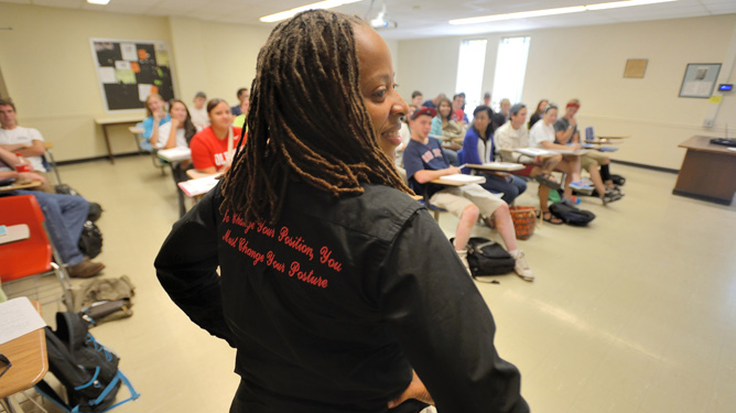 Torina Lewis teaches a mathematics class at the University of Mississippi. UM photo by Kevin Bain.