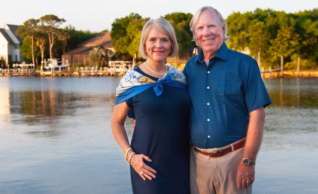 Lynne and Sam Millette enjoy a sunset near their Destin, Florida, home. The couple’s gift to Ole Miss athletics will support Manning Center improvements. Photo by Wren Dabney/UM Foundation