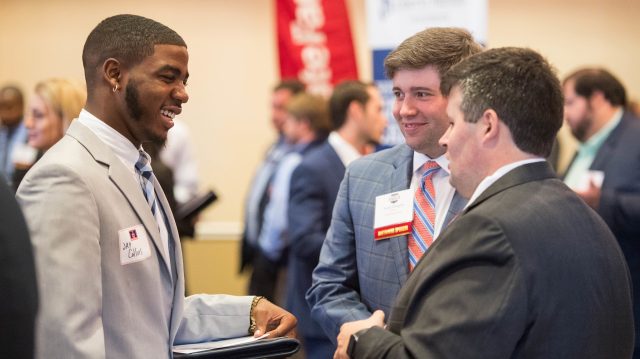 Regular risk management and insurance career fairs give UM students and potential employers chances to meet and exchange information. The university’s risk management and insurance program, which has been recognized as a Global Center of Insurance Excellence, is partnering with insurance firms and the Council of Insurance Agents & Brokers to launch a new program to train students from historically Black colleges and universities for careers in the insurance field. Photo by Kevin Bain/Ole Miss Digital Imaging Services
