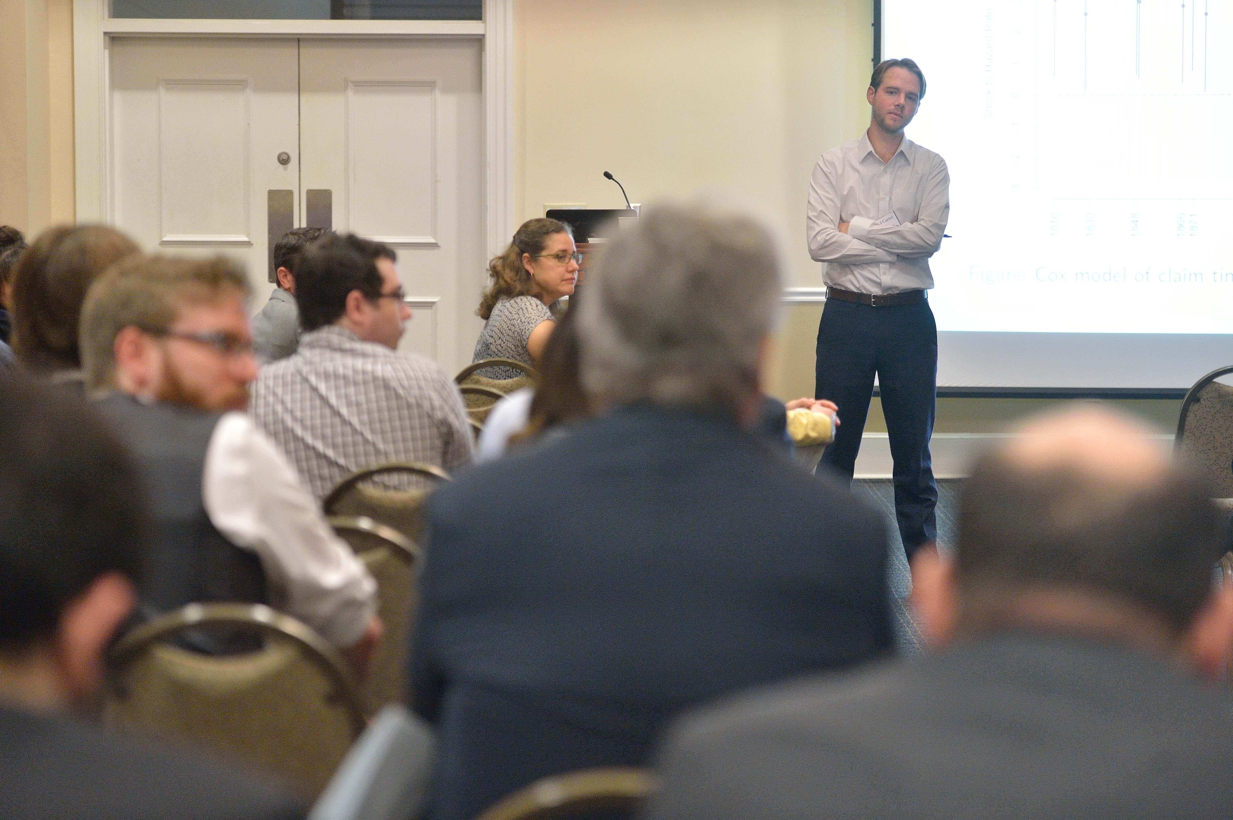 David Carter of Princeton University answers questions after speaking at the 49th Annual North American meeting of the Peace Science Society (International). Photo by Kevin Bain/Ole Miss Communications