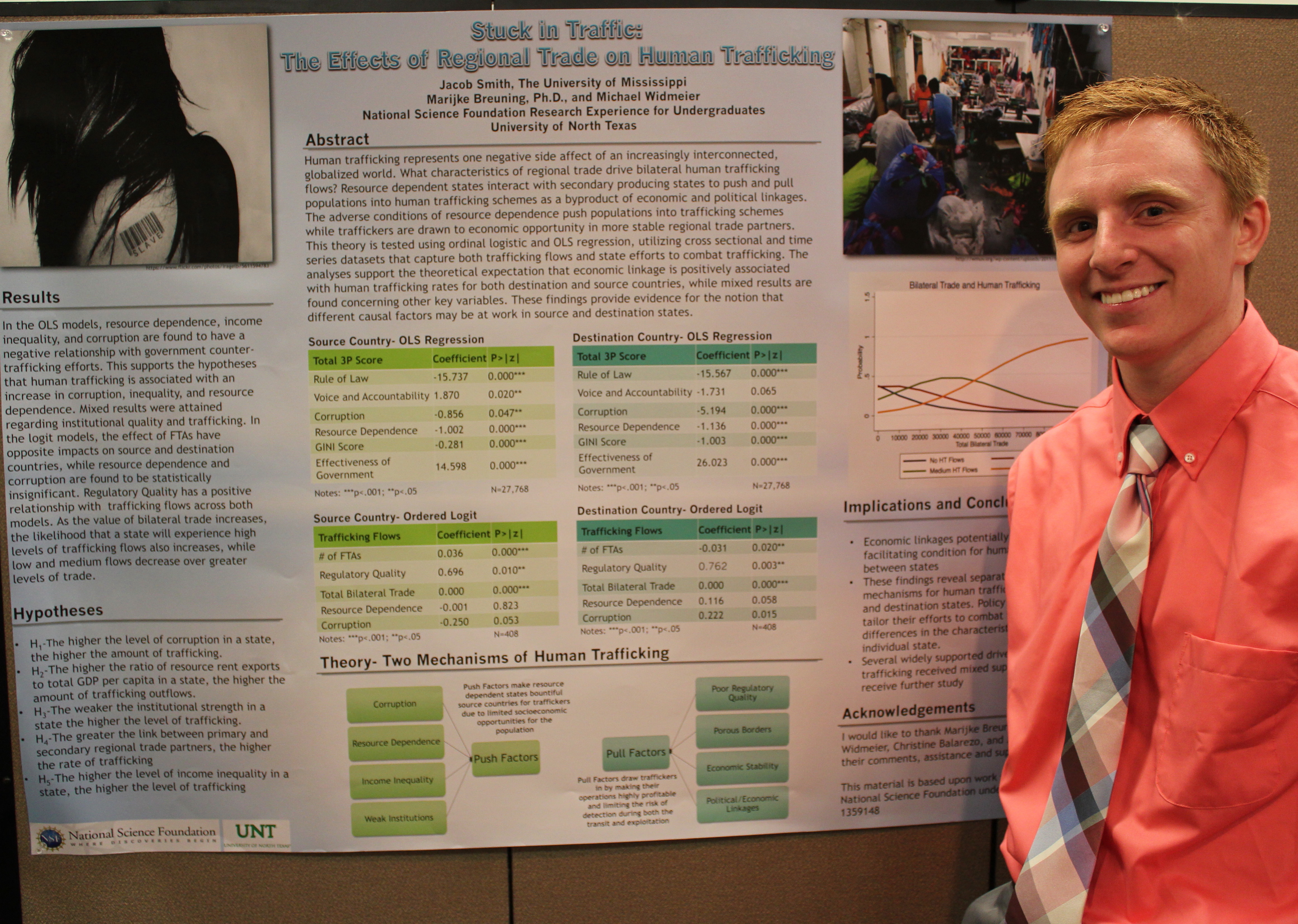 Jacob Smith presents his research on human trafficking at the National Science Foundation Research Experience for Undergraduates in Civil Conflict Management and Peace Science at the University of North Texas.