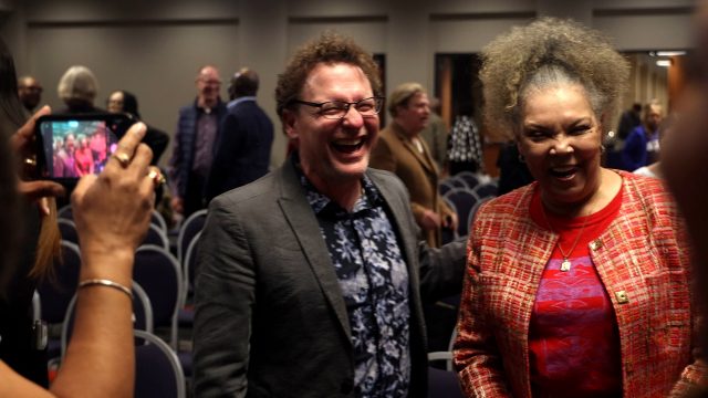 “Let us strive to walk down the path of equality,” Meredith said. “Living together happily is not the impossible dream. And that, my friends, is my blast from the past.”