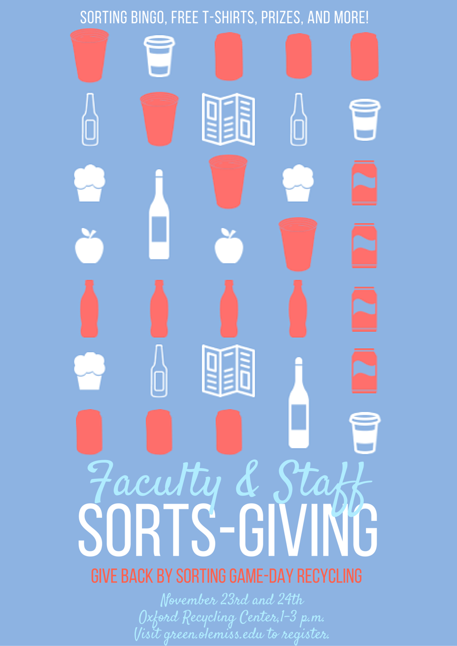OXFORD, Miss. – With Thanksgiving break approaching, the Office of Sustainability is looking for faculty and staff volunteers to sort recyclables collected from the Ole Miss-LSU football game as part of the Green Grove Initiative.