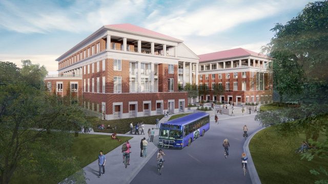 Growth in student enrollment is driving plans for the 110,000-square-foot building at the corner of University Avenue and Grove Loop, overlooking the Grove. The school is a national powerhouse ranked No. 8 in the country and No. 1 in the SEC.