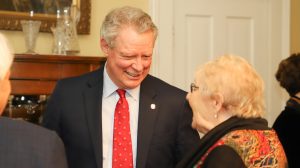 UM Chancellor Glenn Boyce (left) and Carol Dye, a longtime supporter of the Living Music Resource program, chat during the launch event for the Secret Salon Society. Photo by Kirsten Faulkner/UM Development