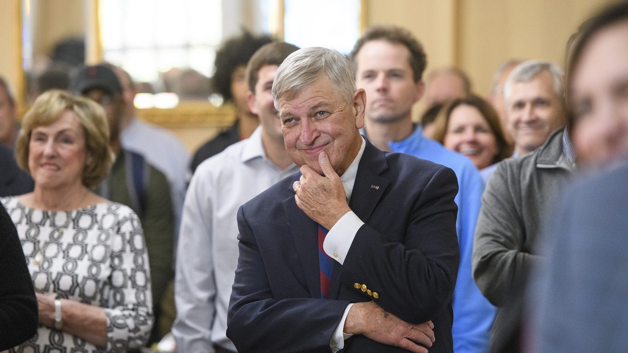 Dewey Knight listens to speakers at his retirement reception. Photo by Thomas Graning/Ole Miss Digital Imaging Services