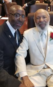 James Meredith (right), the first Black student to enroll at the university, is being honored with creation of the James H. Meredith Legacy Scholarship Fund. Created by UM alumnus Dr. J. Steven Blake (left), the scholarship fund is open to gifts from individuals and organizations through an online campaign during the 60th anniversary observation of Meredith’s enrollment. Submitted photo
