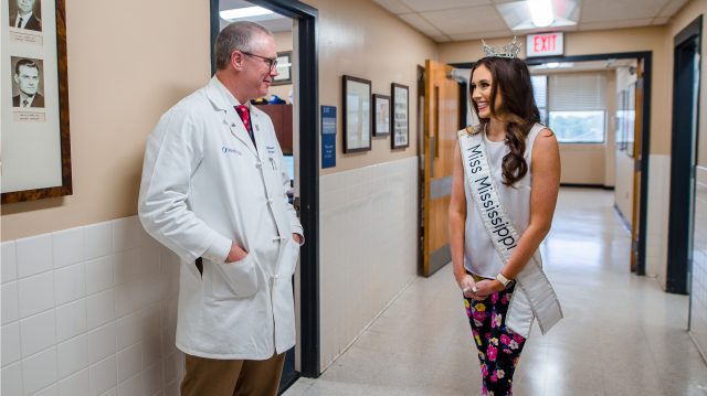 Miss Mississippi Mary Margaret Hyer discusses her organ and tissue donation platform with Dr. Chris Anderson, professor and chair of the Department of Surgery at the UM Medical Center and an abdominal transplant surgeon. Photo by Lindsay McMurtray/UM Medical Center