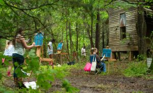 Greenfield Farm provides a fitting environment for plein air painting. In May, art professor Philip Jackson took his class to the site for a day of painting. Photo by Kevin Bain/Ole Miss Digital Imaging Services