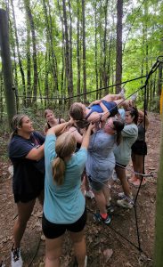 The latest cohort of students in the Mississippi Excellence in Teaching Program works on a team-building exercise at the Ole Miss ropes course before classes begin. Submitted photo